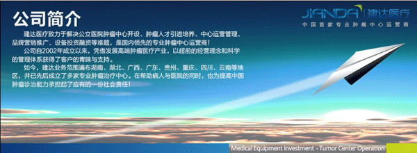 建达投资致力于打造中国首家专业肿瘤中心运营商解决方案,同时还积极倡导先进的经营管理思想,为提升企业管理水平而不懈努力。为了更好地发展与合作伙伴的关系,我们建立了成熟的"合作伙伴计划",期望与更多的伙伴一起结成紧密的、利益共享的团队。并且期望通过这样的团队,为我们的客户提供最好的产品和最优质的服务。